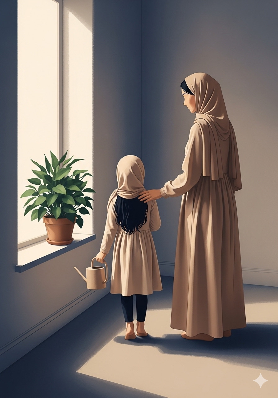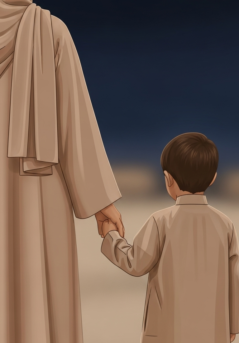 Sur le balcon, sous un voile d'étoiles scintillantes, le petit Ismaïl regardait la lune, ronde et brillante comme une perle de lait. "Maman," demanda-t-il, sa voix un doux murmure dans la nuit fraîche, "la lune est-elle une grosse lampe juste pour nous ?"